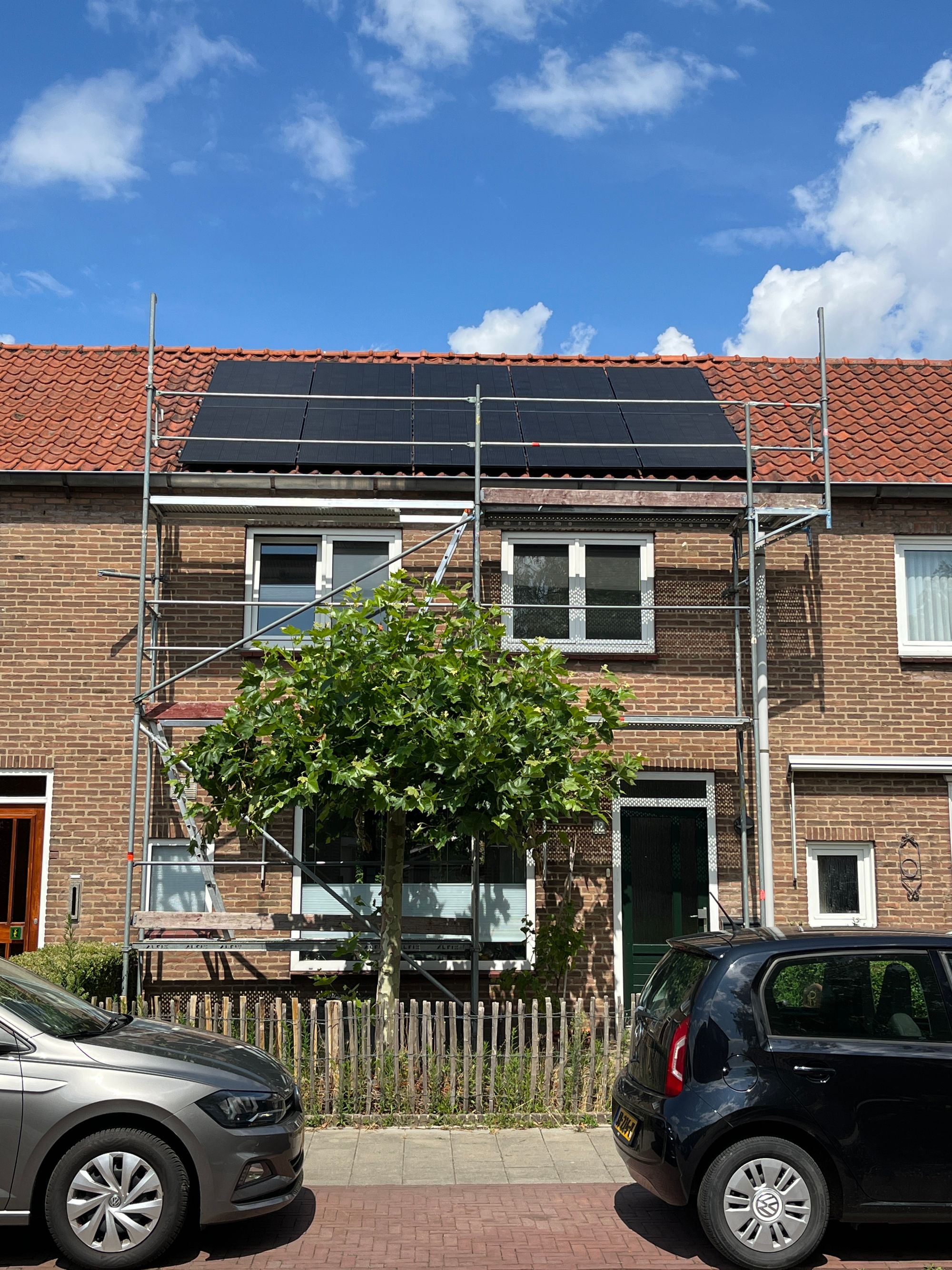 Mijn dak ging eraf (van mijn huis) en een nieuw dak erop. Eindelijk zonnepanelen en daarmee is de per-saldo-energieneutraal renovatie van mijn woning na twee jaar eindelijk voor 99,9% afgerond. Het enige dat nog ontbreekt is een module in mijn afzuigkap die tegen een klepje in het dak zegt "hee, doe eens wat frisse lucht aanzuigen" op het moment dat ik de afzuigkap aan zet.
